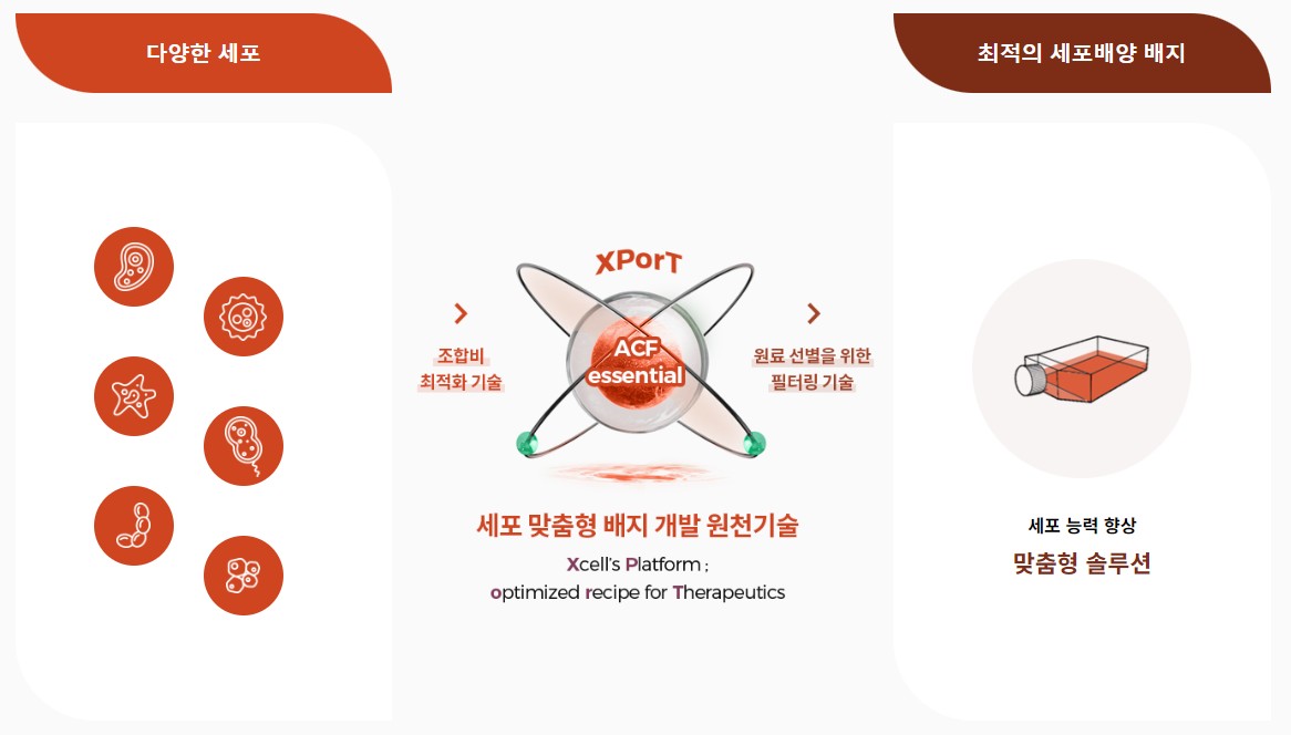 엑셀세라퓨틱스는 첨단 바이오의약품 개발에 필수적인 세포 배양 배지 시장에 진출한 기업입니다. 핵심 기술인 XPorT 플랫폼은 세포 맞춤형 배지 개발을 가능하게 하여 차별화된 경쟁력을 확보하고 있습니다.