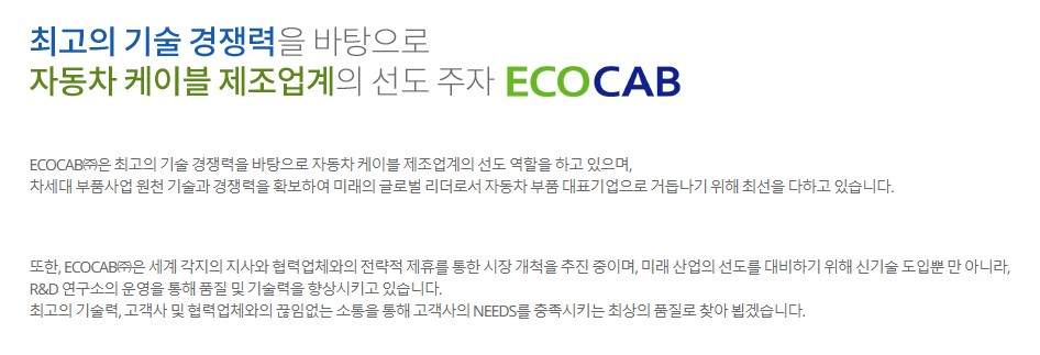• 경쟁사 분석: 에코캡 외에도 다른 와이어링 하네스 업체들이 있으므로, 경쟁사들의 상황도 함께 살펴봐야 합니다.