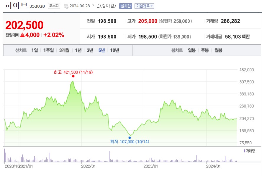• 하이브: 2020년 10월 상장한 하이브는 6개월 보호예수 해제 후 주가가 일시적으로 하락했지만, 이후 BTS의 글로벌 인기와 함께 주가가 급등했습니다.