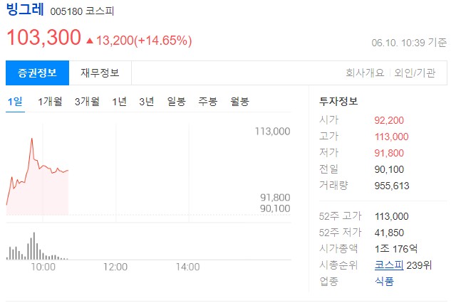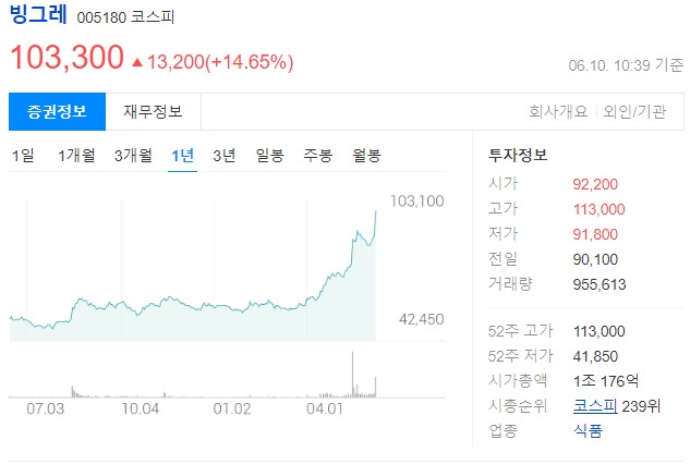 • 빙그레: '메로나', '비비빅', '슈퍼콘' 등 스테디셀러 제품을 다수 보유하고 있으며, 해태아이스크림 인수를 통해 시장 점유율을 확대하고 있어요. 빙그레는 빙과류 외에도 유제품, 스낵, 음료 등 다양한 제품 포트폴리오를 갖추고 있어 안정적인 수익 구조를 가지고 있다는 장점이 있어요.