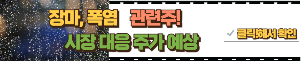 올해 폭염에 폭우도 예상되는 만큼 장마 관련주도 살펴 볼 수 있습니다.
