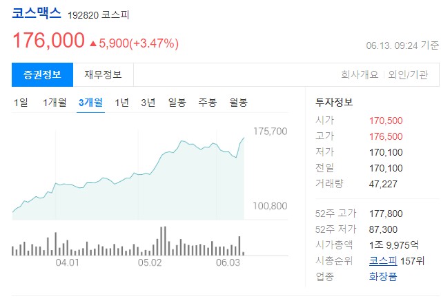 변동성: 화장품 시장은 트렌드 변화에 민감하며 경쟁이 치열하기 때문에 주가 변동성이 클 수 있습니다.