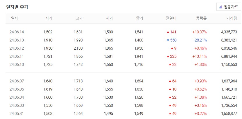 • 분할 매수: 주가 변동성이 큰 만큼, 한 번에 투자하기보다는 분할 매수하여 평균 매입 단가를 낮추는 전략이 유리할 수 있습니다.
