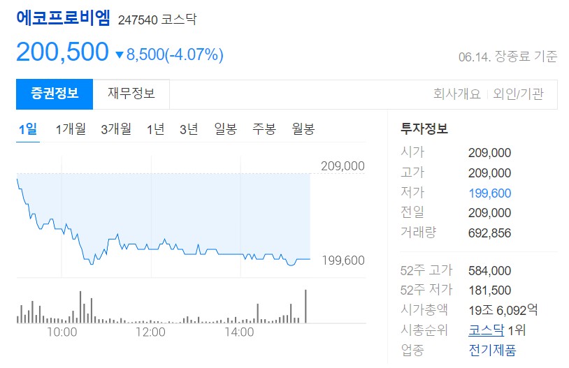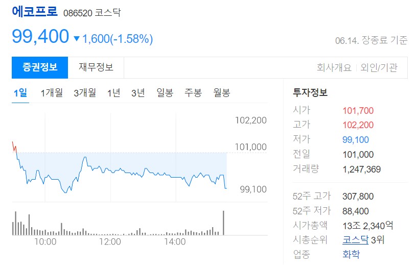 에코프로 그룹 주가 하락의 원인 분석